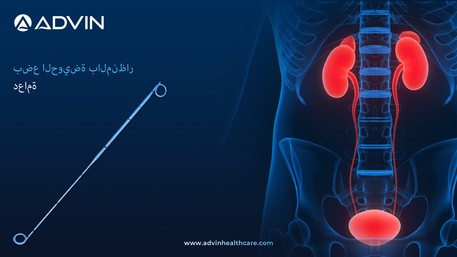 • تقدم شركة Advin Health Care دعامة Endopyelotomy، المصممة خصيصًا للتصريف الداخلي المؤقت من الوصلة الحالبية الحوضية (UPJ) إلى المثانة بعد إجراء عملية Endopyelotomy أو الشق الجراحي لتضيق الحالب.