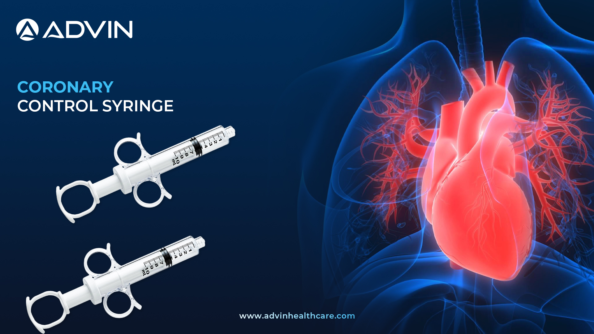 - Advin Health Care produces Coronary Control Syringes that deliver high precision and safety in heart procedures. These syringes are made from durable, medical-grade materials and include clearly marked barrels for accurate contrast measurement.