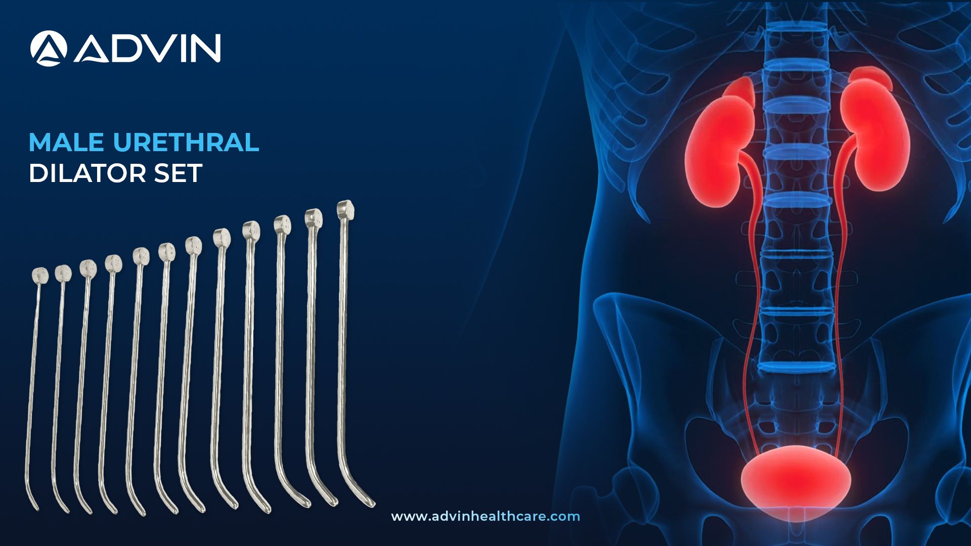 - Advin Health Care presents the Male Urethral Dilator Set, meticulously crafted with international quality standards to support safe and effective urethral dilation procedures. This set is widely used by urologists for treating urethral strictures and performing urethral calibration in male patients.