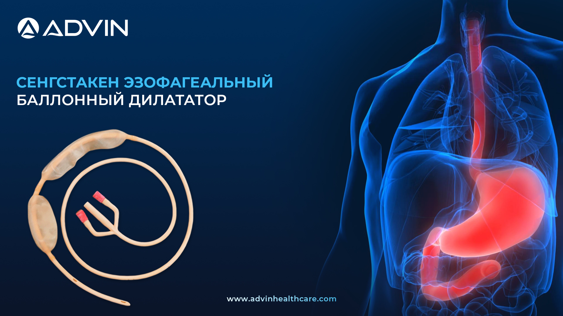 Компания Advin Health Care является ведущим производителем пищеводных баллонных дилататоров Sengstaken, обеспечивающих высокое качество и точность, необходимые для экстренного купирования кровотечений из верхних отделов желудочно-кишечного тракта, вызванных варикозным расширением вен пищевода.